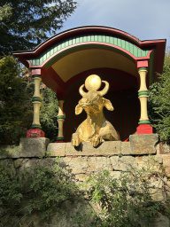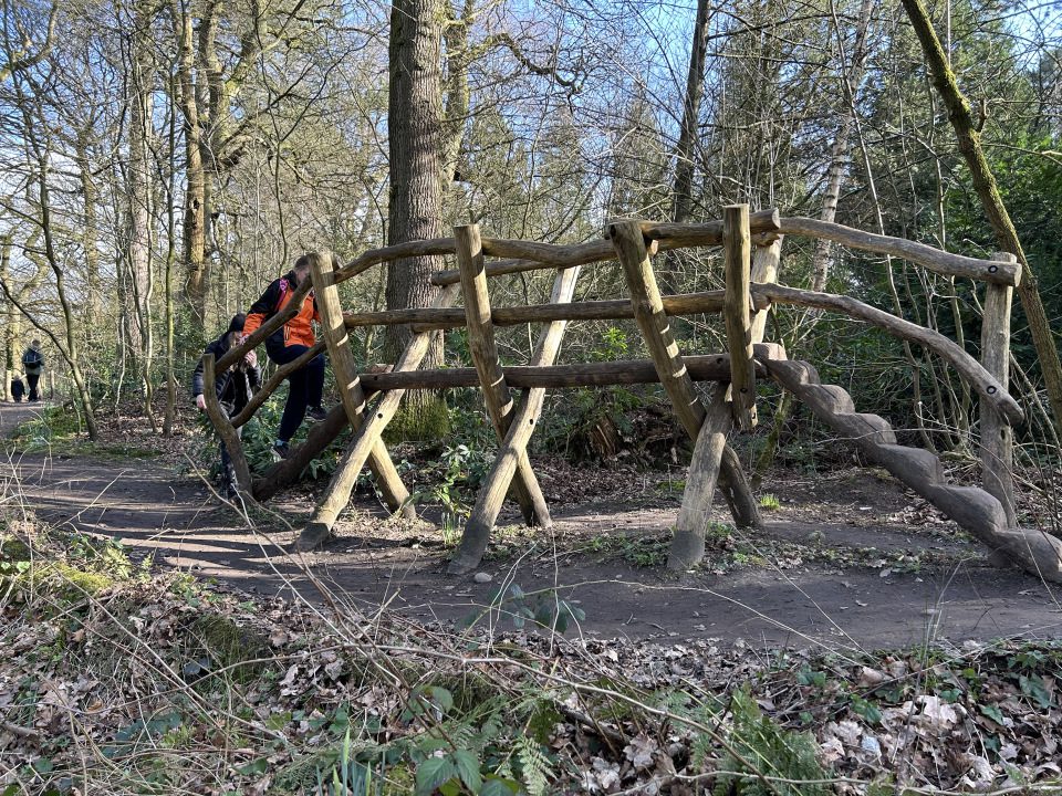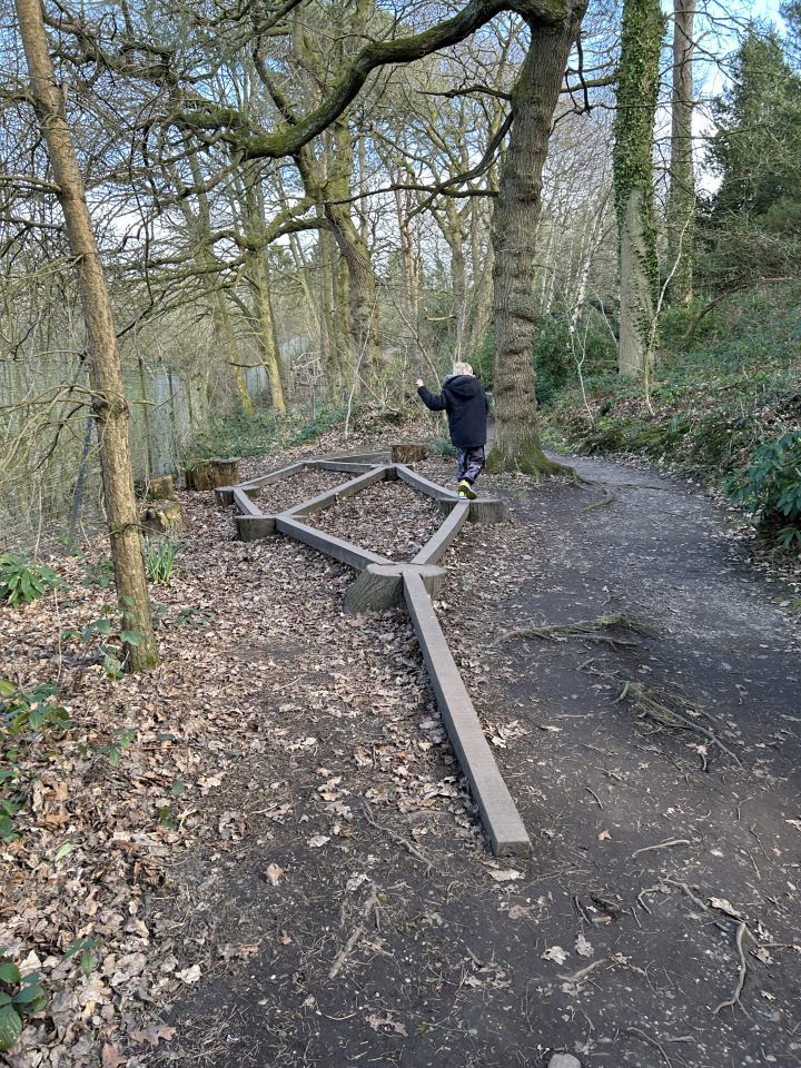 Here you come across a wooden screening wall, almost like a fence, designed to hide people from view. Taller adults can look over the top, while children (and curious grown-ups) can peer through the diamond-shaped viewing holes cut into the wood.